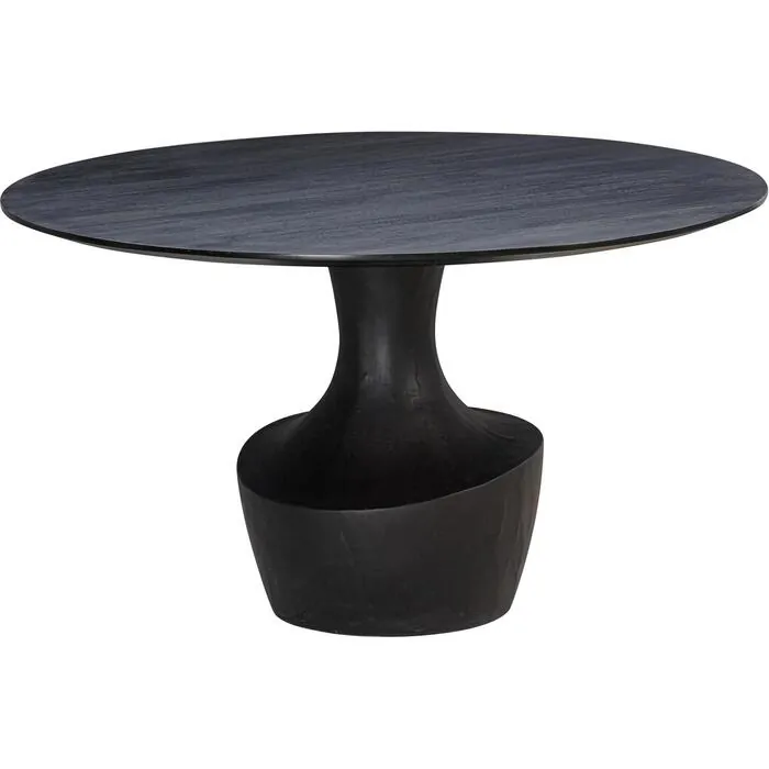 Give it up for the Gevra Black Acacia & Faux Plaster Dining Table! This sculptural dining table adds a modern moment to any dining space, showcasing the beauty of mixed media with its black acacia and faux plaster combination. The generous 54" diameter provides ample room for dining and entertaining. Gather your friends and family around this stunning table and create lasting memories in style and comfort.