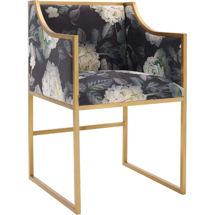Contemporary Design Furniture Atara Floral Velvet Gold Chair CDF-D6349