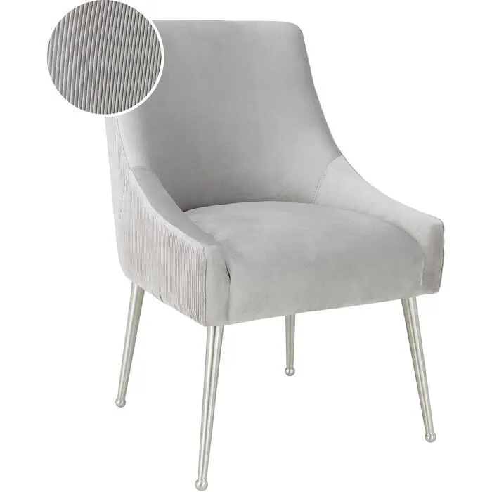 Contemporary Design Furniture Beatrix Pleated Light Grey Velvet Side Chair - Silver Legs CDF-D6398