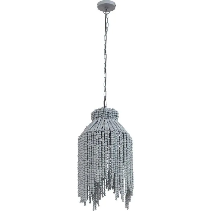 The Esther Beaded Pendant Lamp features a cylindrical shape made of beads meticulously crafted from high-quality wood. The grey color allows this pendant to seamlessly blend in with any design style and is perfect for your home. Install this pendant in your dining room, living room, or entryway to add a pop of texture and calming color!