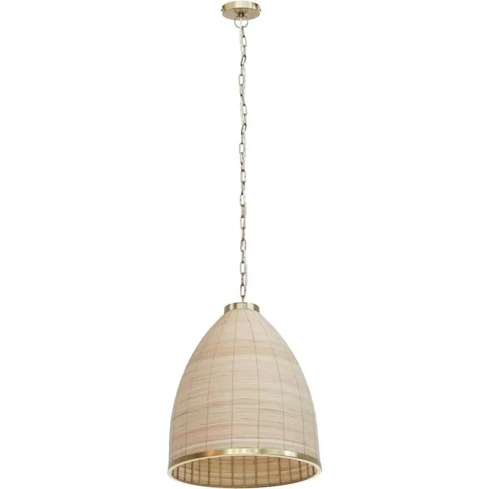 Add some natural elements to your home with the new Kelsey Rattan Pendant Lamp! This hanging pendant is handcrafted out of rattan with gold iron accents to add some luxury and durability. The curved shape and neutral colors adds a beautiful accent to any room while complementing your personal style.