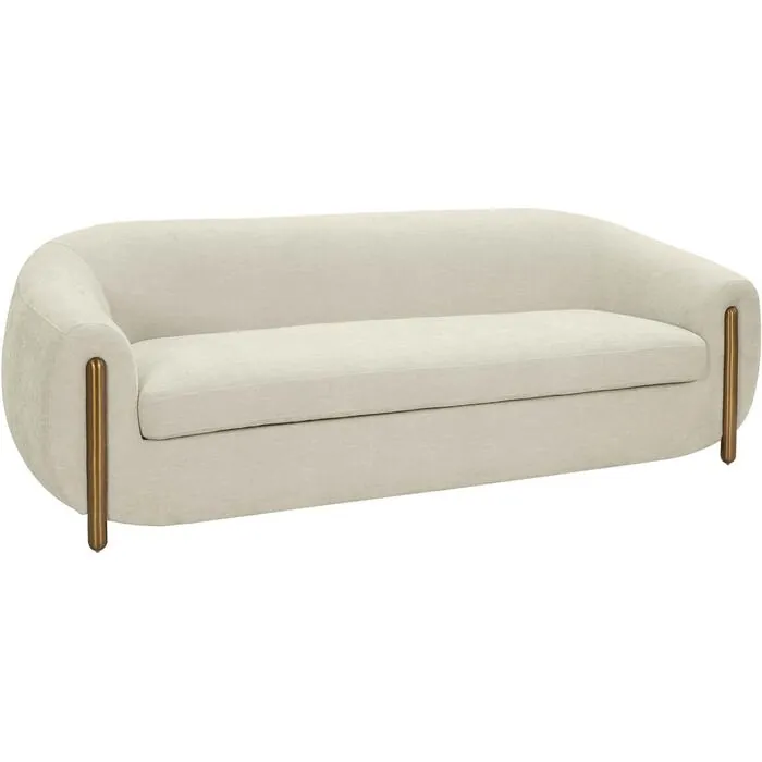 Elevate your home with this stunning Lina Cream Chenille Textured Sofa from the Inspire Me! Home Decor x TOV Collection. Crafted with the finest materials, the Lina Sofa features sumptuous chenille upholstery in a soft cream hue that exudes elegance and sophistication. Plush cushions provide exceptional comfort, making it this sofa the perfect spot to relax after a long day, and the brass details add a luxe statement.