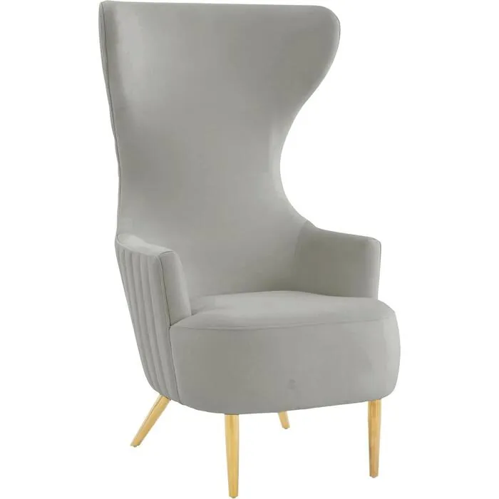 Contemporary Design Furniture Julia Grey Velvet Channel Tufted Wingback Chair CDF-IHS68510