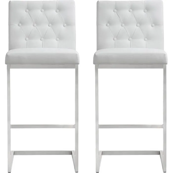 Contemporary Design Furniture Helsinki White Stainless Steel Barstool - Set of 2 CDF-K3643