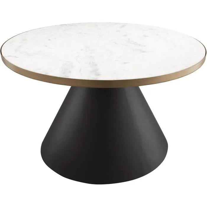Brimming with refinement, this eye-catching design shows off an elevated white marble top elegantly bordered in gold and anchored to a black conical base. Available in two sizes, the Richard collection is sure to enhance any space its placed. As this is a handmade product, slight variations are to be expected and may result in small gaps between the marble and frame.
