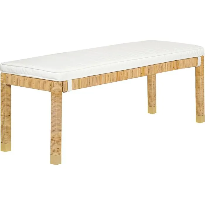 The Amara Bench is the epitome of relaxed California vibes and effortless style. With its wrapped rattan design and brass-capped legs, this bench exudes a laid-back coastal charm. Complete with a comfy cushion, it's the perfect piece for the foot of your bed, extra seating in your dining room or an entryway! Available in Natural or Charcoal.