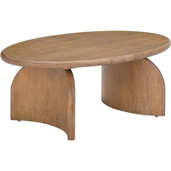 Whether you're enjoying a quiet morning coffee or hosting gatherings with friends and family, the Sofia Cognac Wooden Coffee Table is sure to elevate your living space with its contemporary charm and lasting durability. The curved legs and soft cognac color add an artistic and modern aesthetic. The oval table top allows for space for your trinkets, flowers, books, and snacks.