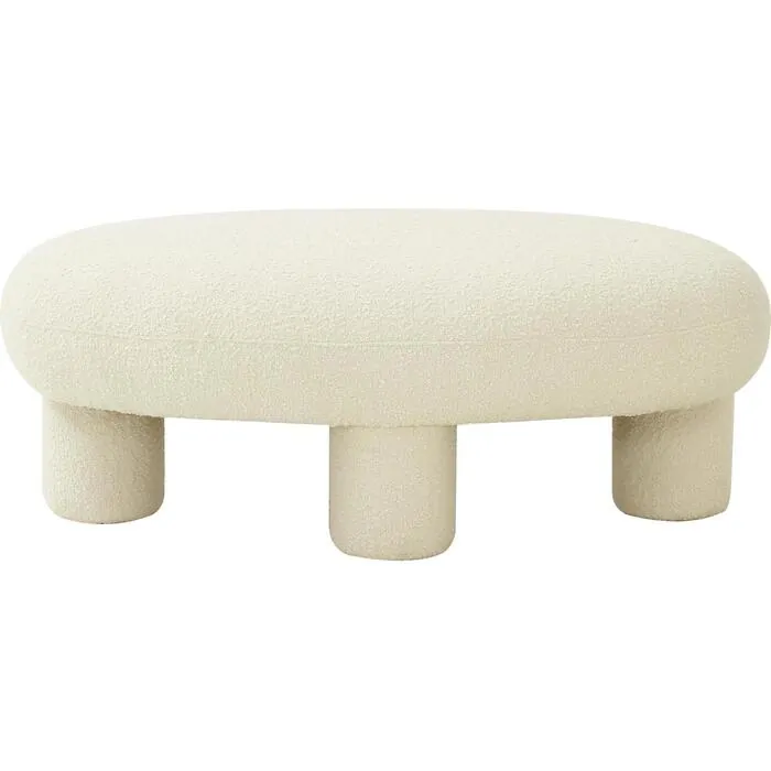 Trendy and chic, this ottoman is all the rage! This stylish piece features a fully upholstered kiln-dried pine frame and is perfect to use as a footrest, coffee table or an extra seat. Complement your living room with this one of a kind cozy textured boucle ottoman.