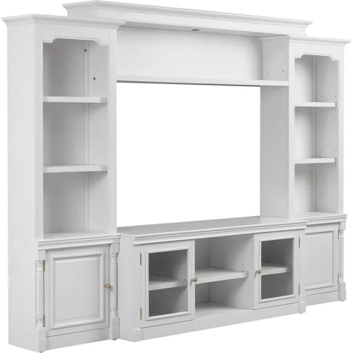 The Virginia Entertainment Center is sure to transform your living space with its traditional moldings and clean lines. With plenty of room for storage and display, including adjustable shelves, this wall unit ensures that you can keep organized and adds an elegant touch to your home. Important features, such as the touch-operated LED light in the bridge and wire management in the main console area make this piece practical as well as beautiful. Available in two classic finishes, this is a unit that is sure to complete your space.