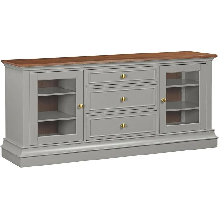 Introducing the Hudson Gray TV Console, the embodiment of traditional elegance and modern functionality. Crafted with the finest materials and attention to detail, this console is the perfect addition to any living room. Available in 4 beautiful finishes and featuring two hardware finish options, a drop-front drawer, adjustable/removable shelving, and wire-management cutouts to keep all your cords tidy, this piece is functional as well as beautiful. The Hudson Gray TV Console is the perfect centerpiece for your entertainment space, creating a warm and inviting atmosphere. Invest in a piece that will last a lifetime and become a cherished part of your home. With its classic style and modern functionality, the Hudson Gray TV Console is the perfect choice for any home.