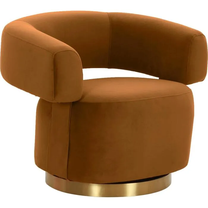Contemporary Design Furniture River Cognac Velvet Swivel Accent Chair CDF-S68542