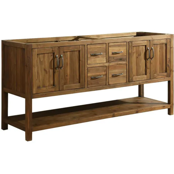 The Austin bathroom vanity cabinet by Design Element combines classic rustic charms with modern features. The cabinet is made from 100% reclaimed wood which is both durable and environmentally friendly. Each Austin vanity has its own unique history. The soft closed doors and drawers bring modern features to the vanity, while the included antique pewter metal hardware provides the perfect finishing touch. Vanity top, sink, faucet and drain are not included. *Due to the nature of reclaimed wood, each vanity may have distinct markings, knots, slight cracks, and uneven surfaces. These imperfections only add to the rustic beauty and will not hinder functionality.