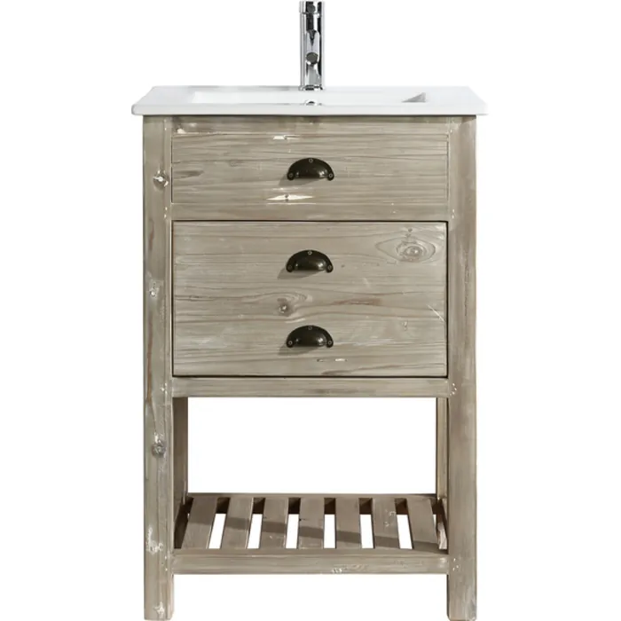 The Asbury 24” single sink vanity by Design Element combines classic rustic charms with modern features. The cabinet is made from 100% reclaimed wood which is both durable and environmentally friendly. Each Asbury vanity has its own unique history. The rectangular white porcelain sink and soft closed drawer brings modern features to the vanity, while the included antique bronze metal hardware provides the perfect finishing touch. Faucet and drain are not included. *Due to the nature of reclaimed wood, each vanity may have distinct markings, knots, slight cracks, and uneven surfaces. These imperfections only add to the rustic beauty and will not hinder functionality.
