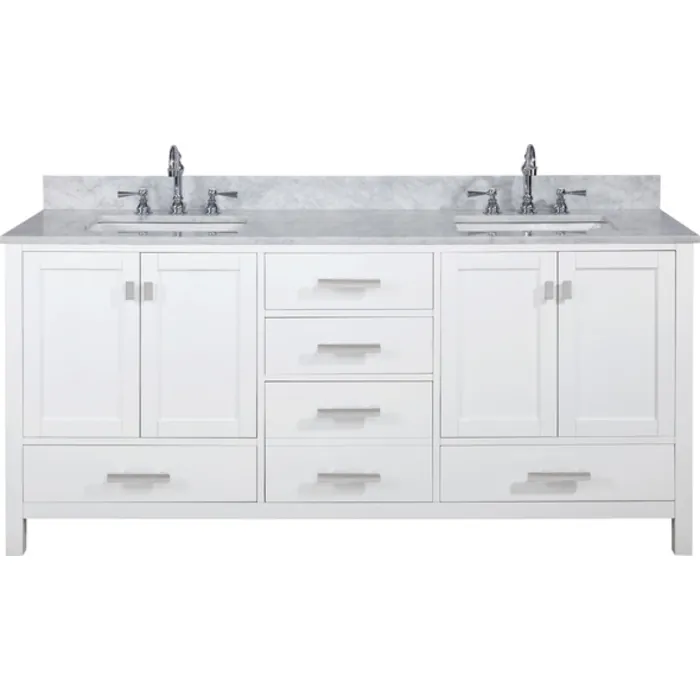 - 3/4" Thick Seamless Carrara Marble Countertop with Pre-Drilled Holes to accommodate 8" Wide Spread Faucets