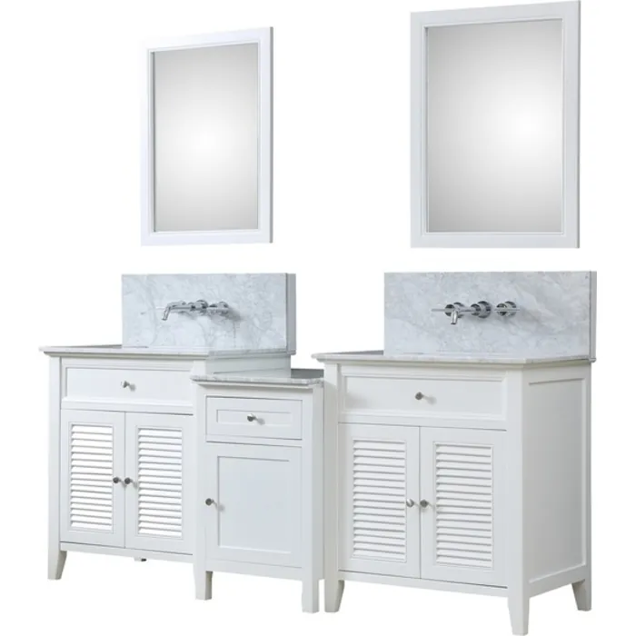 Direct Vanity Shutter Spa Premium 82 In. Bath And Makeup Hybrid Bathroom Vanity In White With Marble Bathroom Vanity Top In Carrara White With White Basin And Mirrors 2S12-WWC-WM-MU1