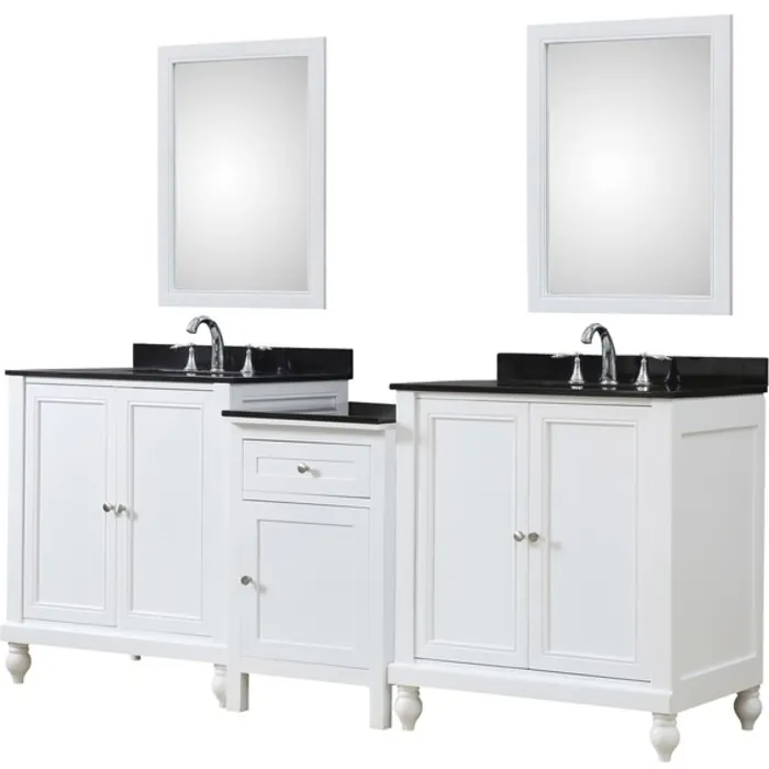 Direct Vanity Classic Spa 83 In. Bath And Makeup Hybrid Bathroom Vanity In White With Granite Bathroom Vanity Top Inblack With White Basin And Mirrors 2S9-WBK-MU1