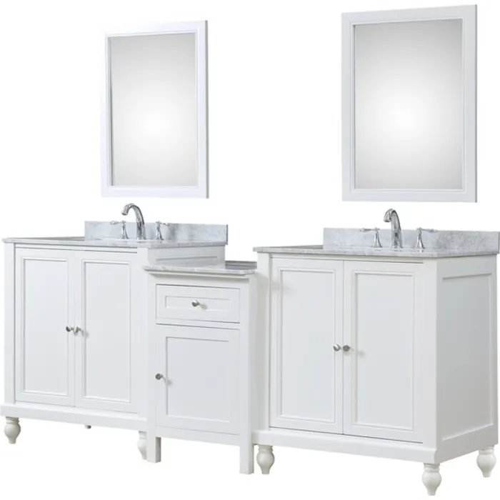 Direct Vanity Classic Spa 83 In. Bath And Makeup Hybrid Bathroom Vanity In White With Marble Bathroom Vanity Top In Carrara White With White Basin And Mirrors 2S9-WWC-MU1