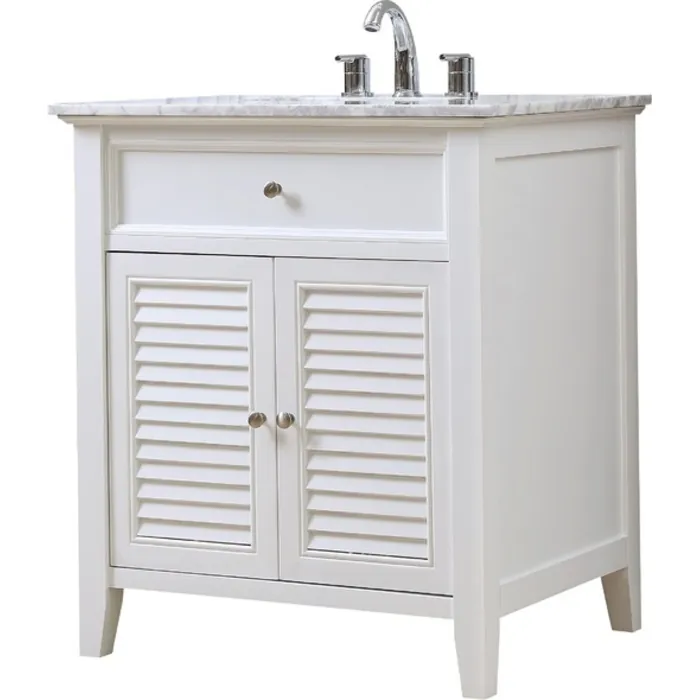 Direct Vanity Shutter 32 inch White Bathroom Vanity With Carrara White Marble Top 32S12-WWC
