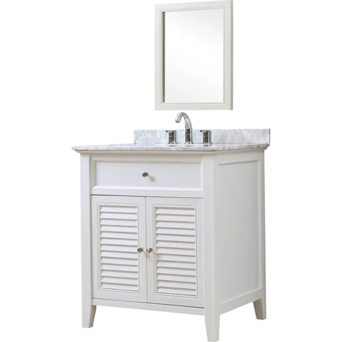 Direct Vanity Shutter 32 inch White Bathroom Vanity With Carrara White Marble Top And Mirror 32S12-WWC-M