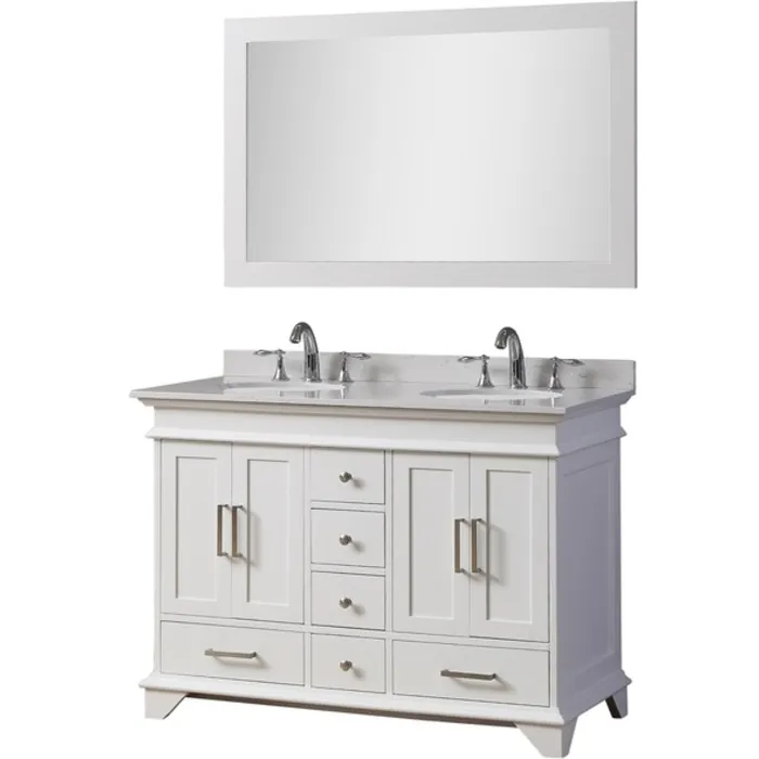 Direct Vanity Roselyn 48 in. Bathroom Vanity in White with White Culture Marble Top with white basins and 1 Mirror 4050D2-WW-M