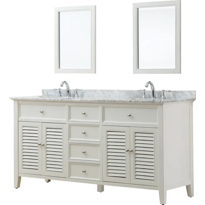 Direct Vanity Shutter 70 inch White Bathroom Vanity With White Carrara Marble Top And Mirrors 6070D12-WWC-2M