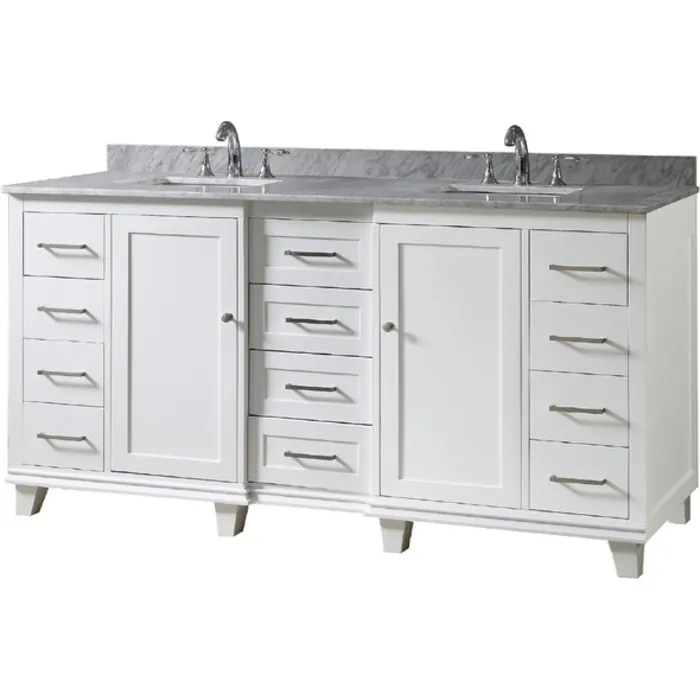 Our 72 in. Ultimate Classic double bathroom vanity sink and cabinet with prized Carrara white marble top is the most functional bath vanity in the market. Maximized drawer spaces with design details including a pull out cabinet for larger item with easy access. Completed with features like integrated power outlet for the hair dryer, iron, and phone charging capability and an jewelry organizer. Uniquely positioned this line as the ultimate bath vanity cabinet in the market today.