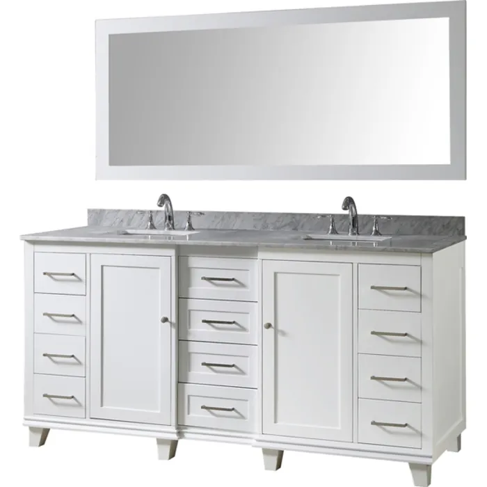 Our 72 in. Ultimate Classic double bathroom vanity sink and cabinet with prized Carrara white marble top is the most functional bath vanity in the market. Maximized drawer spaces with design details including a pull out cabinet for larger item with easy access. Completed with features like integrated power outlet for the hair dryer, iron, and phone charging capability and an jewelry organizer. Uniquely positioned this line as the ultimate bath vanity cabinet in the market today.