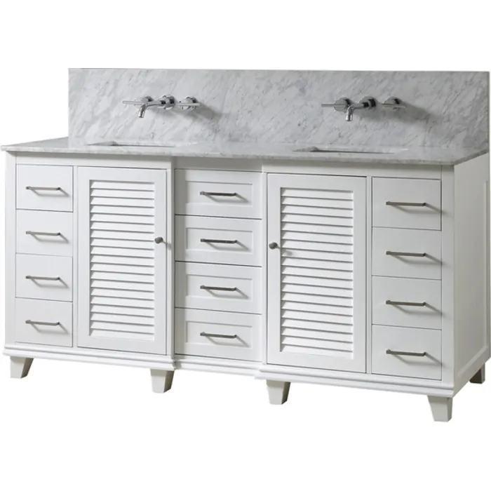 Our 72 in. Ultimate Shutter double bathroom vanity sink and cabinet with prized Carrara white marble top is the most functional bath vanity in the market. Maximized drawer spaces completed with integrated power outlet for the hair dryer, iron, and phone charging capability. Uniquely positioned this line as the ultimate bath vanity cabinet in the market today.