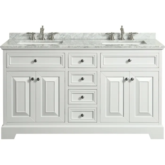 Eviva Monroe 60 In. White Double Bathroom Vanity With White Carrara Marble Top And White Undermount Porcelain Sinks EVVN123-60WH