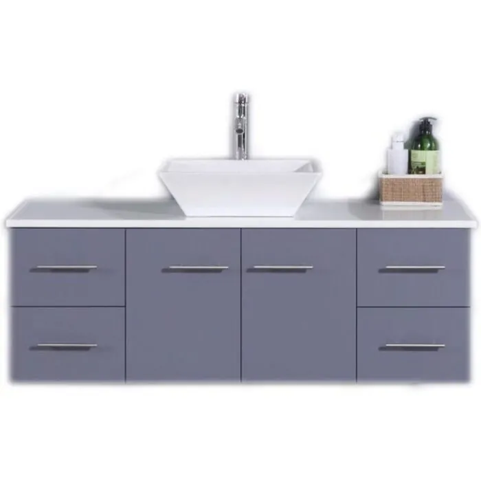 Totti Wave 48" Gray Modern Bathroom Vanity With Counter-Top And Sink Is one of the best wall mount bathroom vanities available in the east coast, if you're looking for a simple bathroom cabinet that could provide you the ease of space and clean floors and that will look very simple on your wall then Totti wave would be an optimum choice.