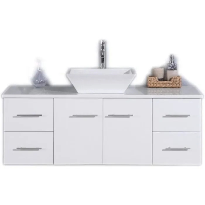 Totti Wave 48" White Modern Bathroom Vanity With Counter-Top And Sink Is one of the best wall mount bathroom vanities available in the east coast, if you're looking for a simple bathroom cabinet that could provide you the ease of space and clean floors and that will look very simple on your wall then Totti wave would be an optimum choice.