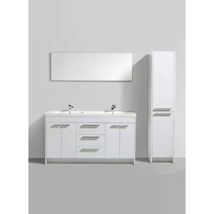 Eviva Lugano 60" White Modern Bathroom Vanity with White Integrated Acrylic Double Sink is just what your bathroom needs. Its modern design makes is one of the best selling bathroom vanities on the market. The white integrated sink gives it a cleaner look with no maintencance. Available Sizes: ,36,48,& 60, bathroom cabinets, bathroom furniture, bath vanity. If cutting-edge contemporary design is your style then the Lugano vanity is for you – modern, chic and built to last a lifetime. Price Includes: -Bathroom Cabinet -Vanity Top (Sink)