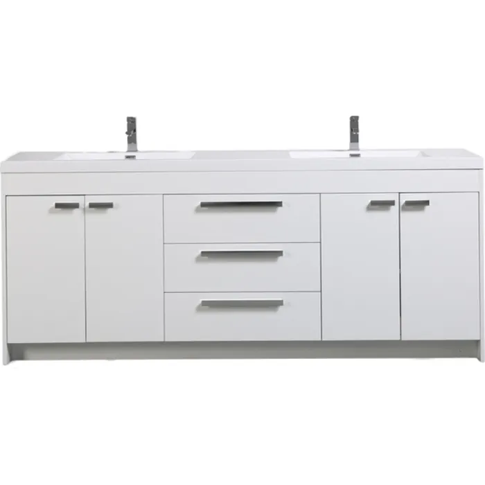 Eviva Lugano 84 inch White Modern Bathroom Vanity With White Integrated Acrylic Double Sink EVVN1900-8-84WH