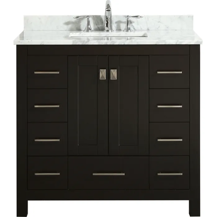 Eviva Hampton 36 In. Transitional Espresso Bathroom Vanity With White Carrara Countertop And White Undermount Porcelain Sink EVVN411-36ES