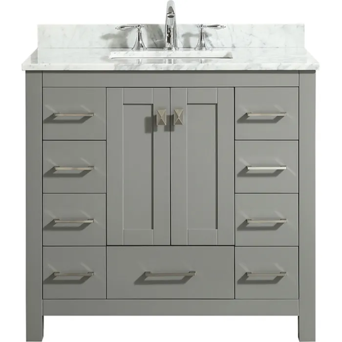 Eviva Hampton 36 In. Transitional Gray Bathroom Vanity With White Carrara Countertop And White Undermount Porcelain Sink EVVN411-36GR