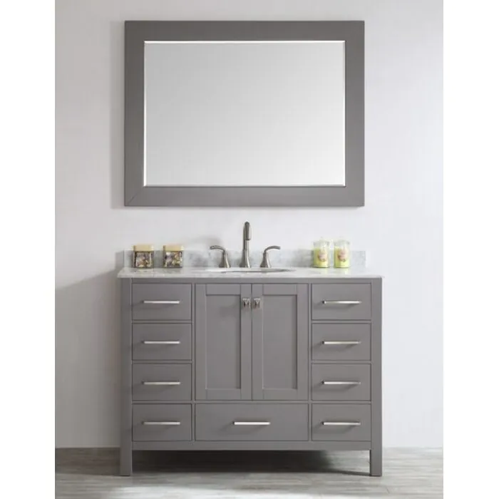 Eviva Aberdeen 48 inch Transitional Grey Bathroom Vanity With White Carrera Countertop Square Sink EVVN412-48GR