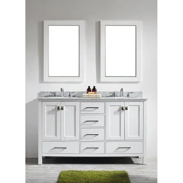 Eviva Aberdeen 60 inch Transitional White Bathroom Vanity With White Carrera Marble Top EVVN412-60WH