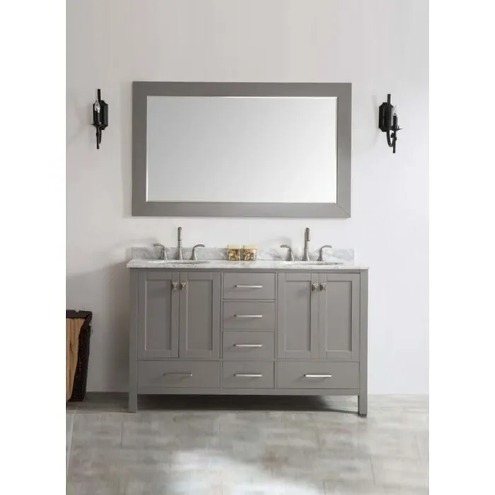 Eviva Aberdeen 72 inch Transitional Grey Bathroom Vanity With White Carrera Countertop Double Square Sinks EVVN412-72GR