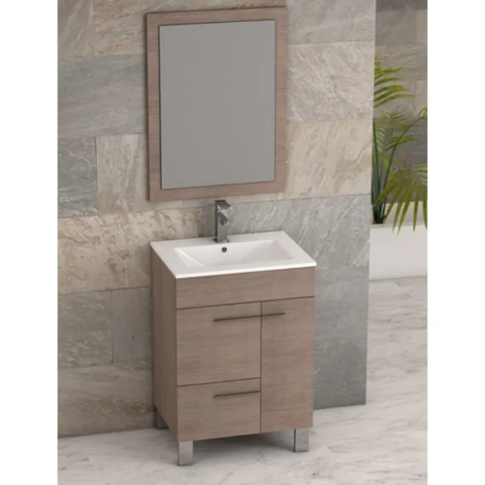 The modern design of the Eviva Cup® 24"" Medium Oak modern bathroom vanity, is the ultimate choice for a compact modern/contemporary bathroom. The made in spain bathroom vanity features an integrated ceramic basin resting above the main cabinet. Constructed from Eco-friendly engineered wood, the Cup® is very durable with hardwood characteristics similar to maple wood.