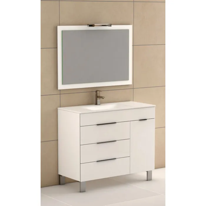 The modern design the Eviva Geminis® 39" bathroom vanity is considered to be a very modern categorized bathroom vanities which is a high quality made in spain vanity that can be a perfect fit for a modern bathroom. The vanity features an integrated white ceramic sink that has no maintenance to be done. Constructed from Eco-friendly engineered wood with a very high quality high white finish, the Geminis® is very durable with hardwood characteristics similar to maple wood.