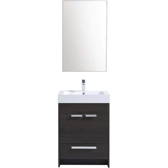 Eviva Lugano 24" Grey Oak modern bathroom vanity with a white integrated acrylic sink is just what your bathroom needs. Its modern design makes it one of the best-selling bathroom vanities on the market today. The white integrated sink gives it a clean look with no required maintenance. If cutting-edge contemporary design is your style, then the Lugano vanity is for you €“ modern, chic and built to last a lifetime. Price Includes: Bathroom Cabinet, Vanity Top (Sink).