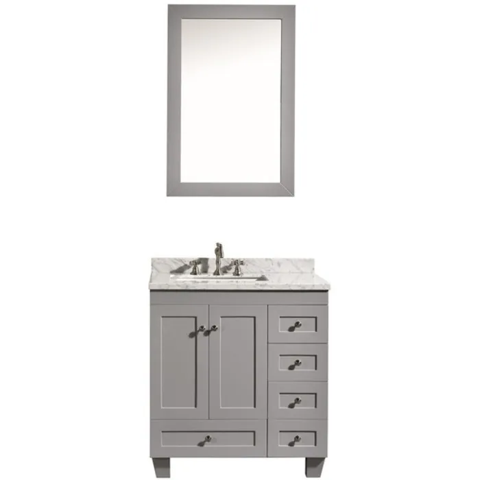 Eviva Acclaim C. 30 inch Transitional Grey Bathroom Vanity With White Carrera Marble Counter-top EVVN69-30GR