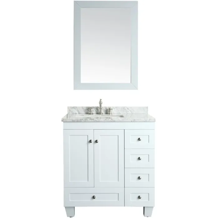 Eviva Acclaim C. 30 inch Transitional White Bathroom Vanity With White Carrera Marble Counter-top EVVN69-30WH