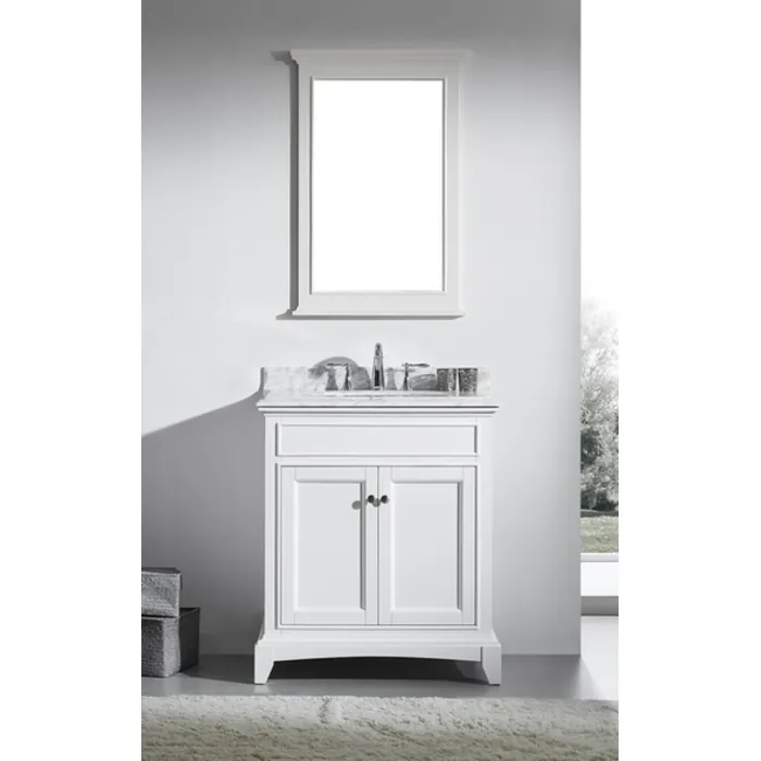 Eviva Elite Stamford 30 inch White Solid Wood Bathroom Vanity Set With Double Og White Carrera Marble Top White Undermount Porcelain Sink EVVN709-30WH
