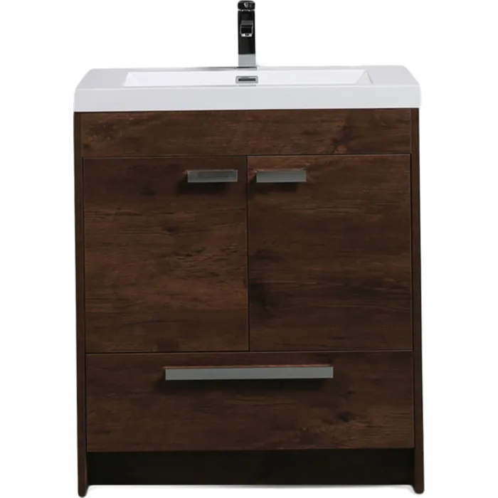 Eviva Lugano 30 inch Rosewood Modern Bathroom Vanity With White Integrated Acrylic Sink EVVN750-8-30RSWD