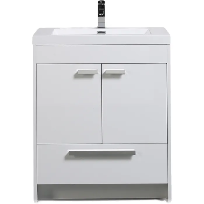 Eviva Lugano 30 inch White Modern Bathroom Vanity With White Integrated Acrylic Sink EVVN750-8-30WH