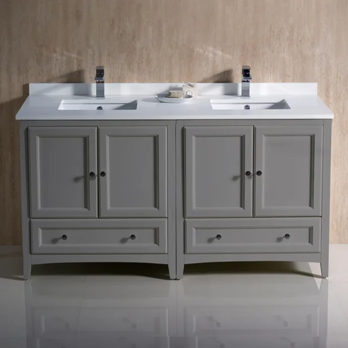 Fresca Oxford 60 inch Gray Traditional Double Sink Bathroom Cabinets W/ Top & Sinks FCB20-3030GR-CWH-U