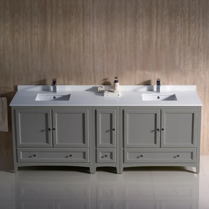 Fresca Oxford 84 inch Gray Traditional Double Sink Bathroom Cabinets W/ Top & Sinks FCB20-361236GR-CWH-U