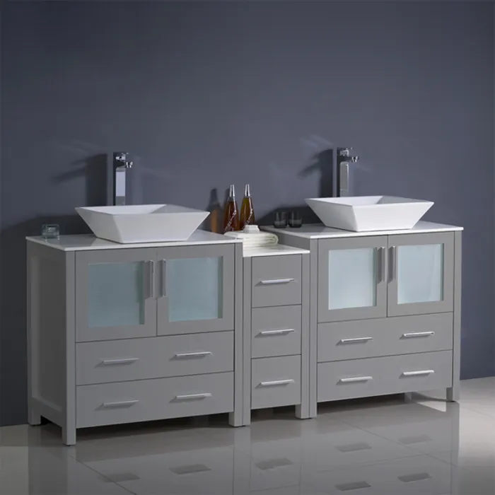 Fresca Torino 72 inch Gray Modern Double Sink Bathroom Cabinets W/ Tops & Vessel Sinks FCB62-301230GR-CWH-V