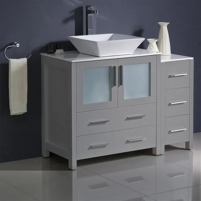 Fresca Torino 42 inch Gray Modern Bathroom Cabinets W/ Top & Vessel Sink FCB62-3012GR-CWH-V